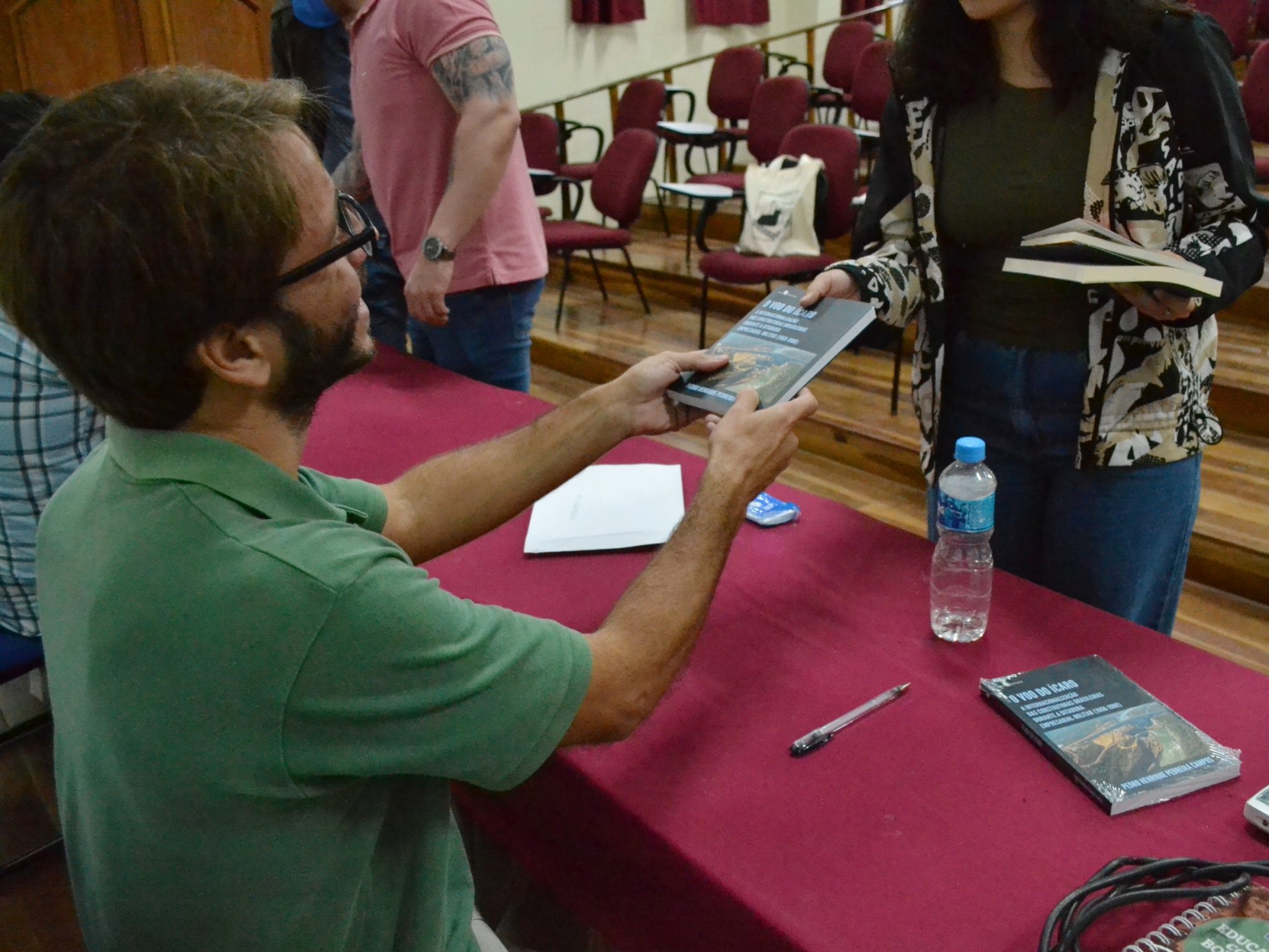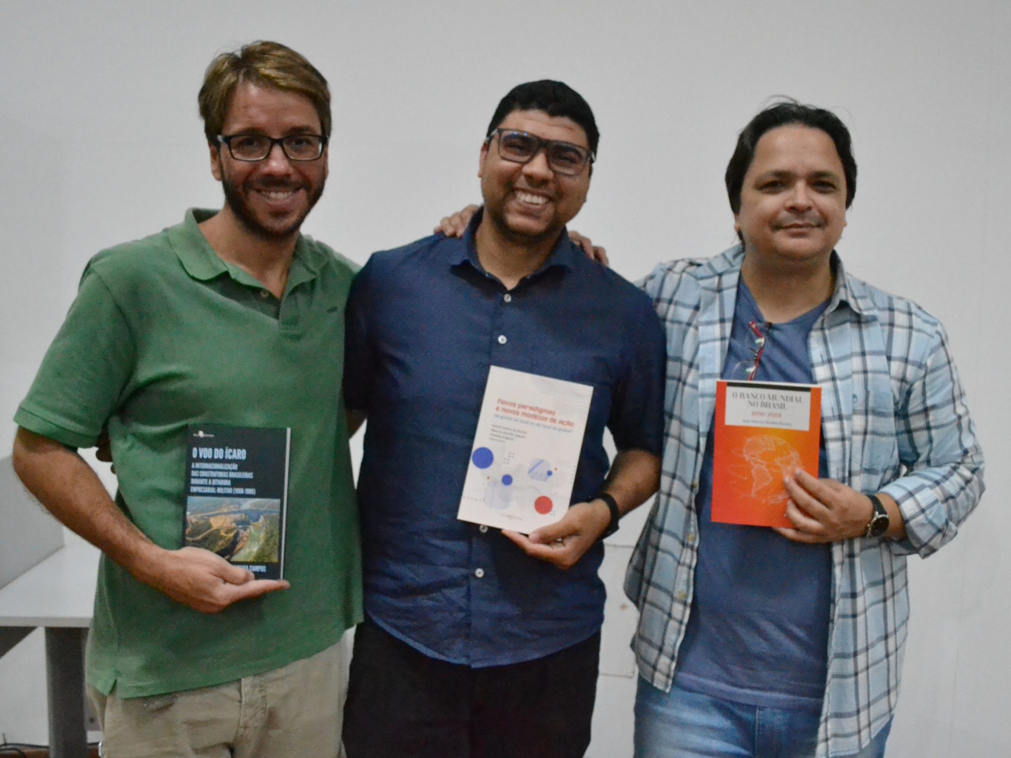 Na terça-feira, 23/8, o auditório Paulo Freire (ICHS) recebeu os professores do Departamento de História (ICHS), João Márcio Mendes Pereira e Pedro Henrique Campos; e André Santos da Rocha, do Departamento de Geografia (IGeo/UFRRJ), para o lançamento de seus livros. O evento contou com a presença de estudantes e docentes, incluindo a diretora do ICHS, professora Flávia Braga, que apresentou os escritores.