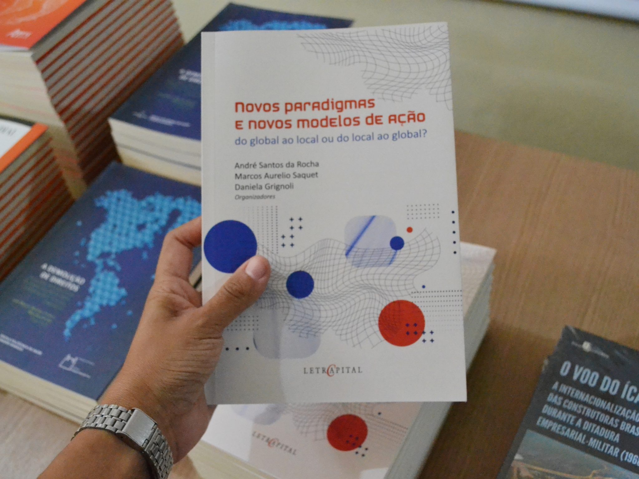 As publicações “Geografia e Relações Internacionais: Temas e Debates Contemporâneos” e “Novos Paradigmas e novos modelos de ação: do global ao local ou do local ao global?” foram apresentadas pelo professor André Rocha. Ambas produzidas em colaboração com diferentes pesquisadores e pesquisadoras dos campos da Geografia e das Relações Internacionais. Esse último trazendo um recorte sobre as condições de habitação e vida em cidades periféricas da metrópole, tratando sobre acesso ao saneamento básico na Baixada Fluminense.