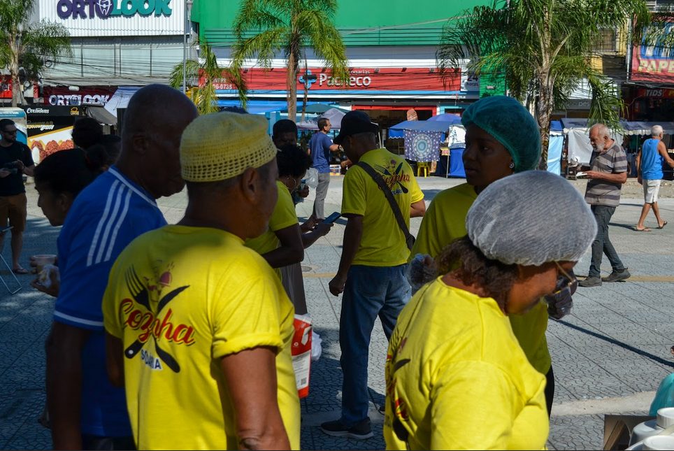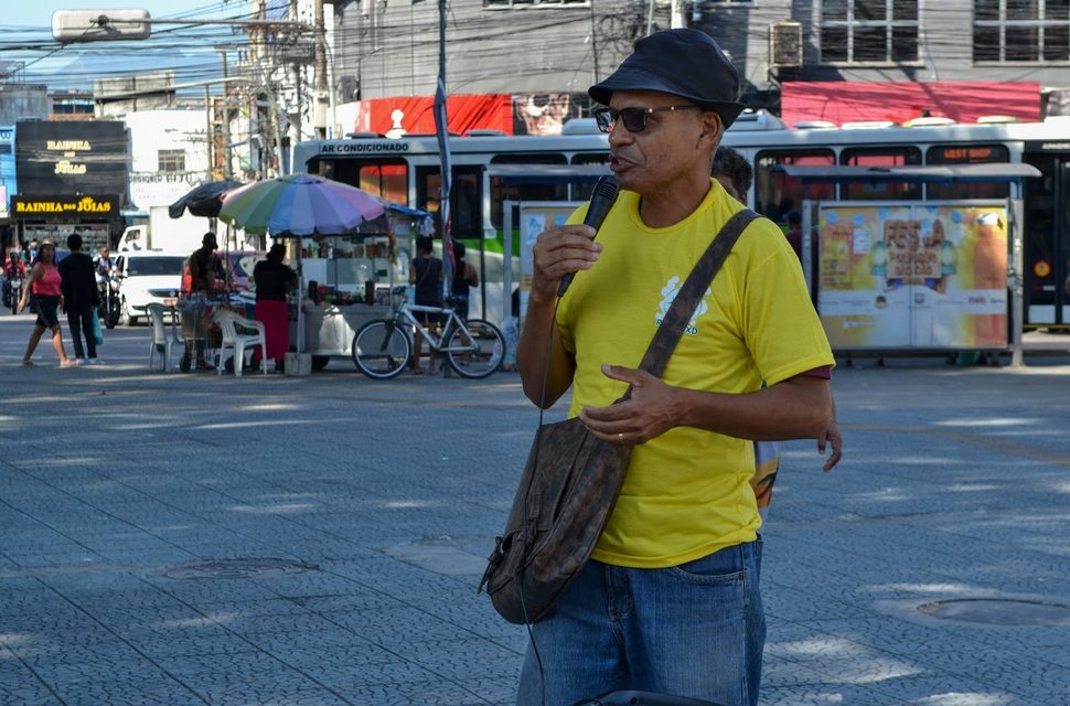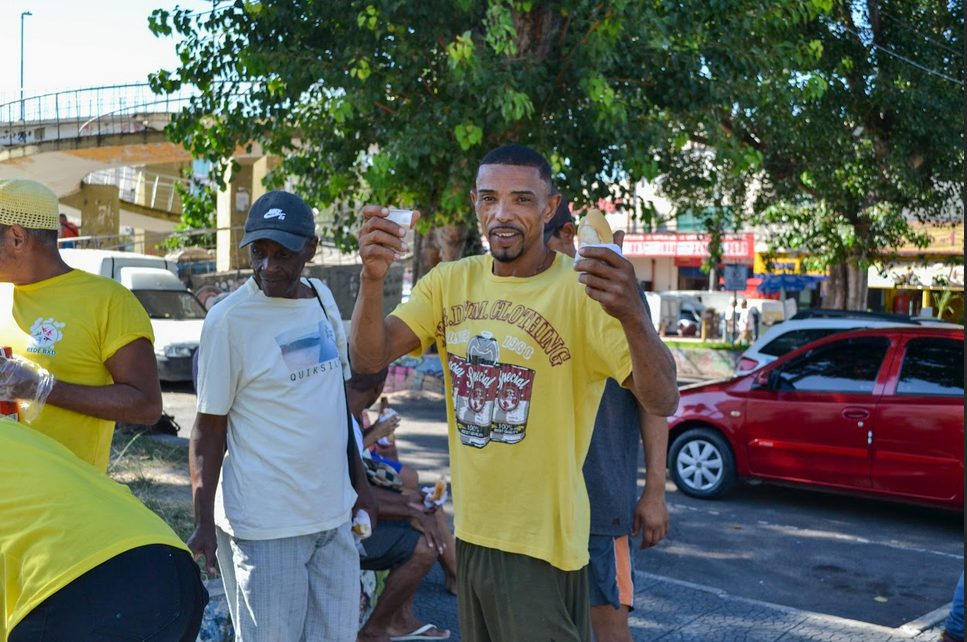 Seguindo com a proposta da dinâmica do Curso, o grupo de mobilizadores preparou uma segunda atividade para moradores de São João de Meriti. No dia 27/04, a praça da Matriz, região central do município, foi o local escolhido para o Aulão Público sobre Combate à Fome, uma parceria com a Rede de Cozinhas Solidárias, liderada pelo pastor Jorge Luiz da Silva, e a iniciativa Nossa Meriti, liderada por Douglas Almeida, para debater políticas públicas de combate à insegurança alimentar com a população. O aulão foi o momento de ouvir a sociedade civil, levantando e fomentando o debate público sobre as demandas abordadas durante a primeira oficina. Na ocasião, também houve a distribuição gratuita de café da manhã para todos.