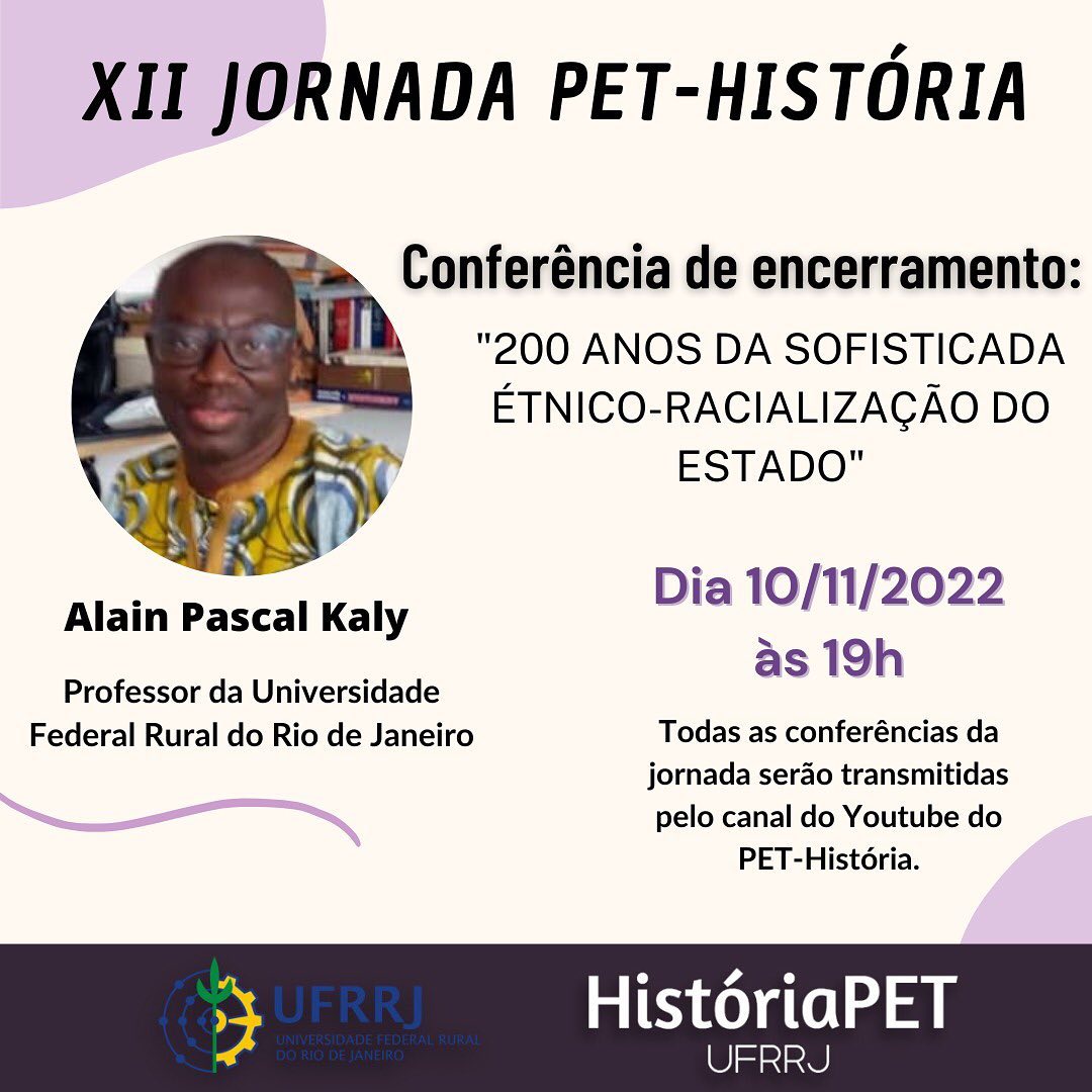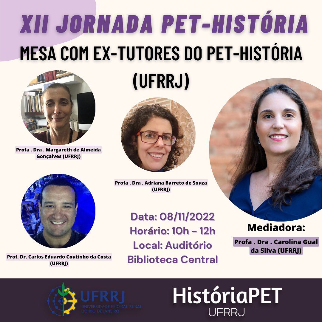 O ICHS convida todos e todas a participarem da XII Jornada PET- História que acontecerá entre 8 e 10 de novembro no câmpus Seropédica da UFRRJ.