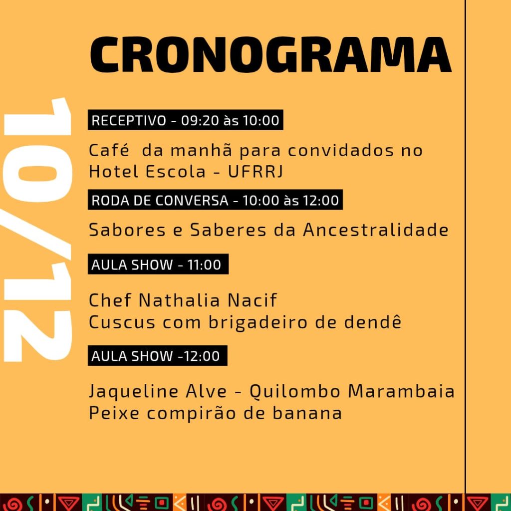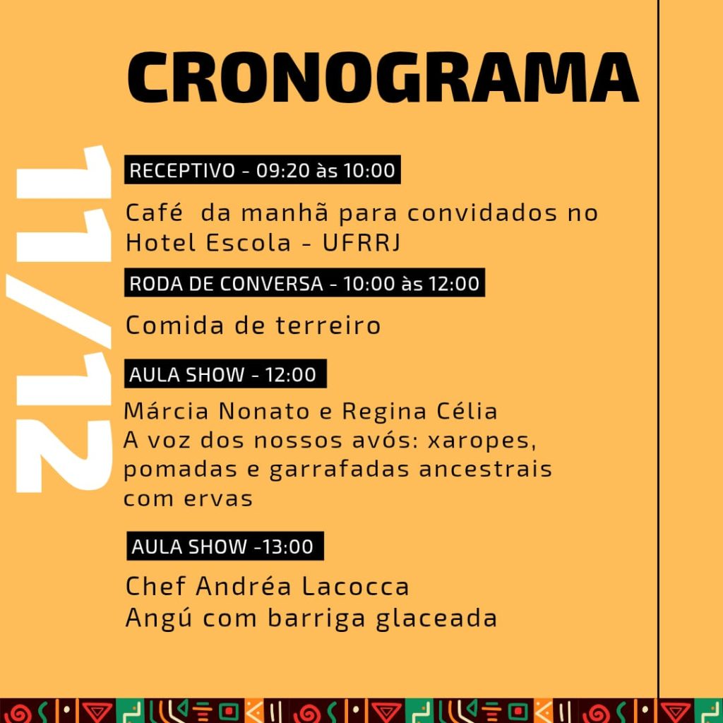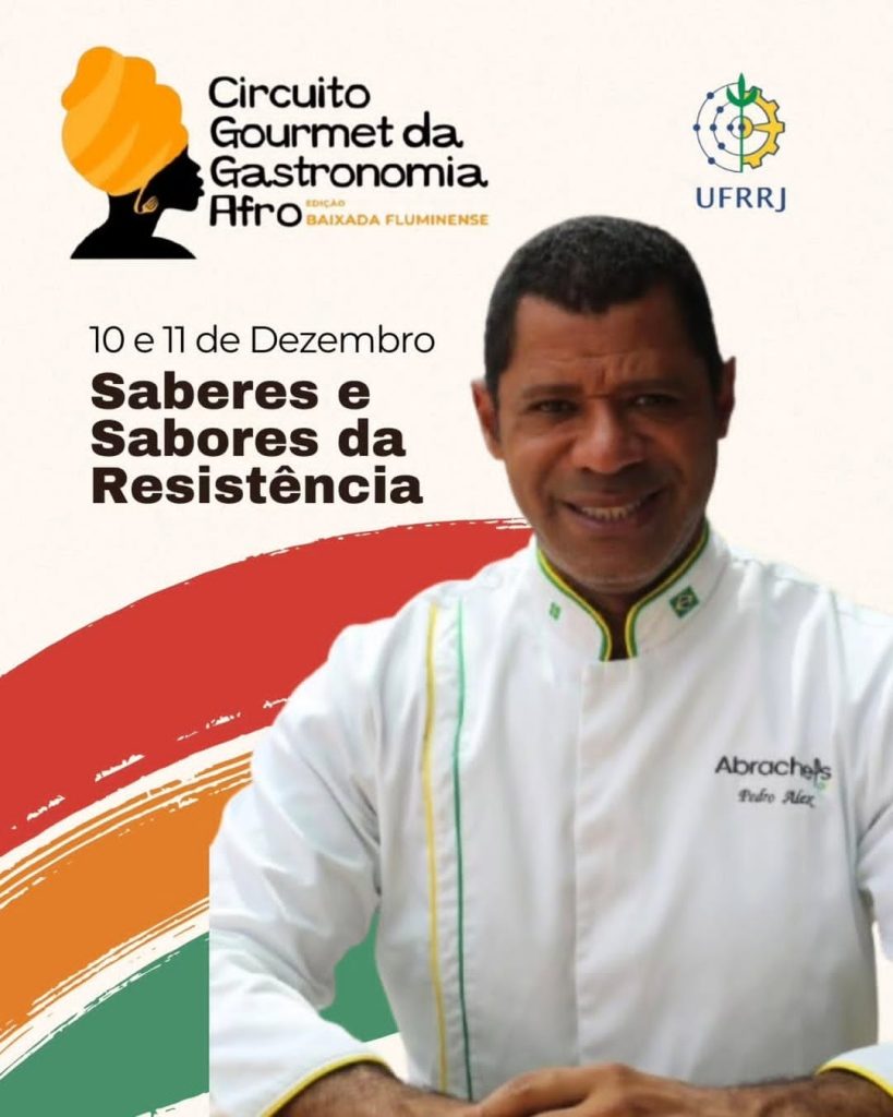 Nos dias 10 e 11 de dezembro, a cozinha afrodias será destaque no Hotel Escola da UFRRJ – Seropédica/RJ, com aulas-show que celebram ancestralidade, território e a potência da gastronomia preta.