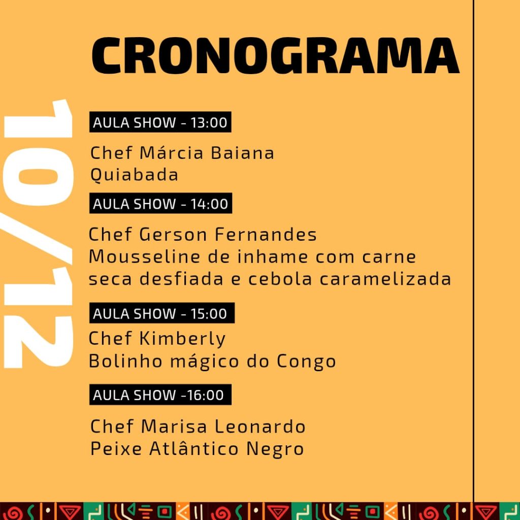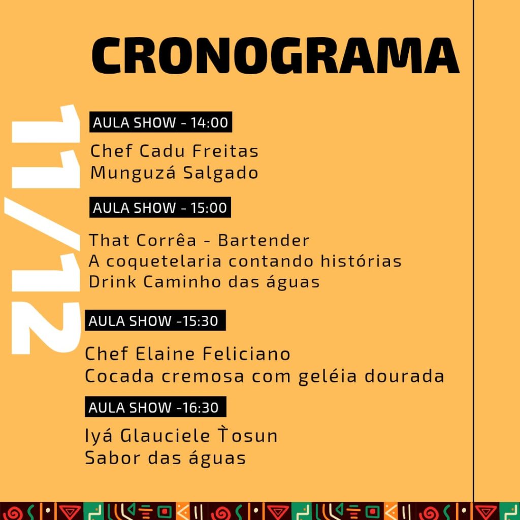Será um encontro dedicado a saberes ancestrais, valorizando práticas culinárias que moldam a gastronomia afro-brasileira. Uma oportunidade única de vivenciar axé, memória e sabor.